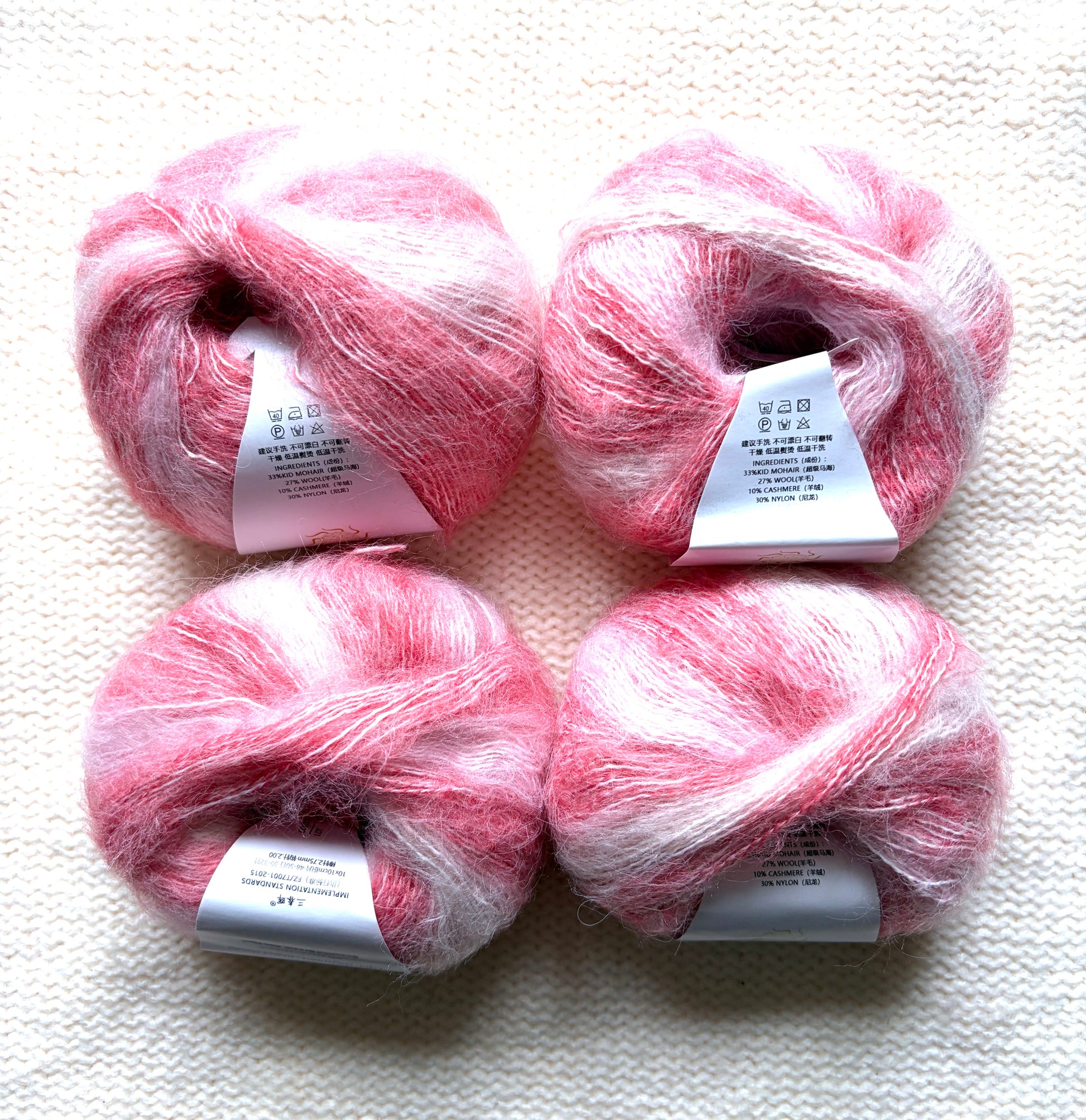 4 balls x 25g Cashmere Mohair yarn : Mohair + Wool + Cashmere + Nylon
